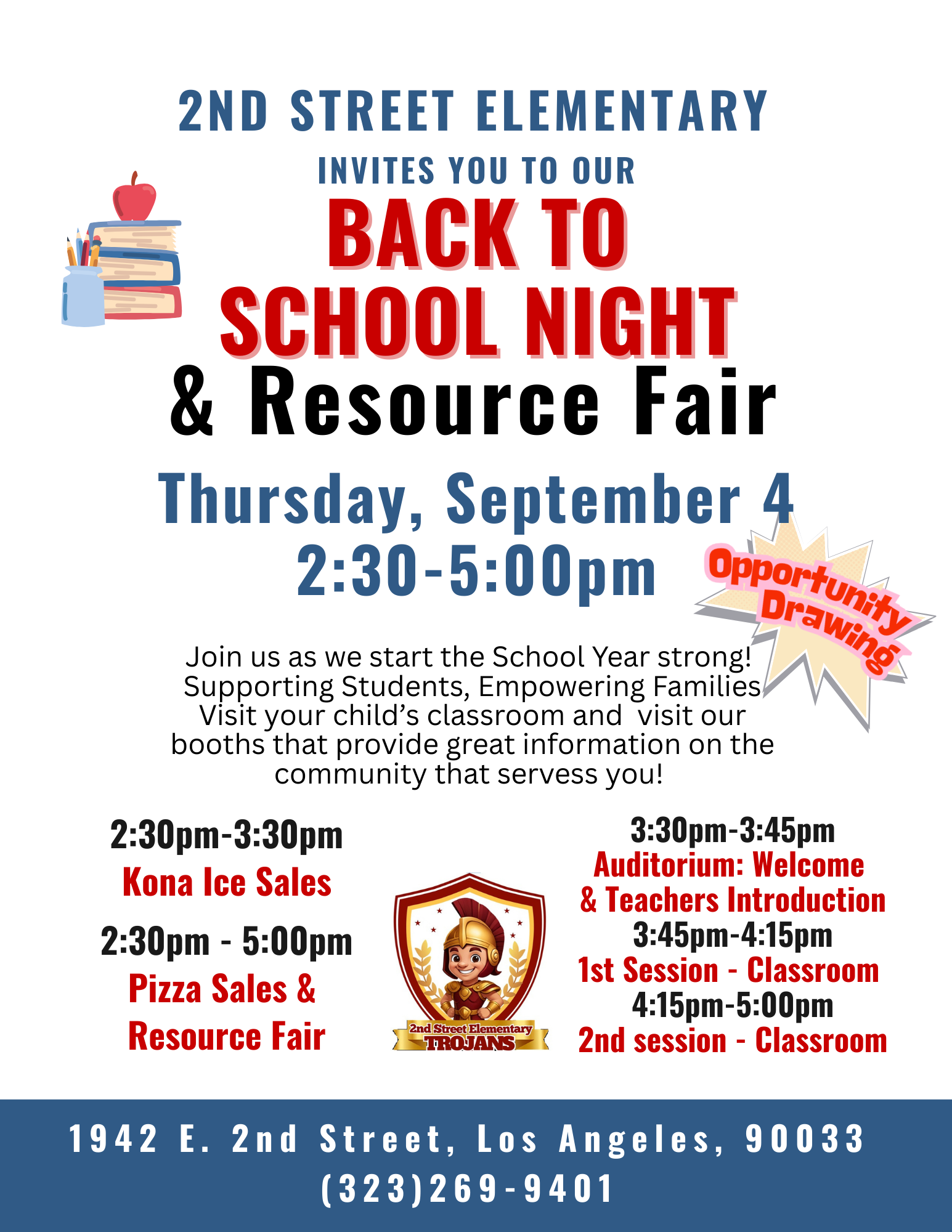 Don’t miss out! This is not only a great opportunity to meet your child’s teacher, to visit their classroom, and to learn about the great resources in our community.